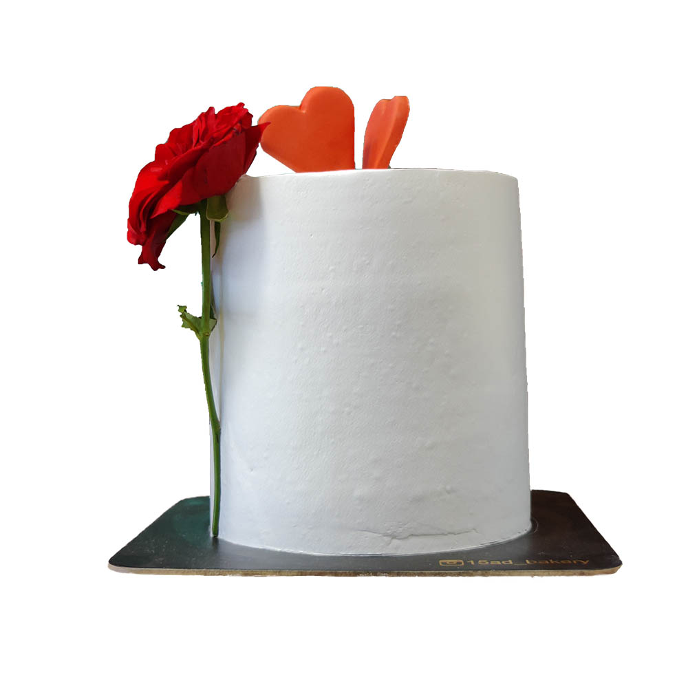 White Love Cake with Rose and Hearts